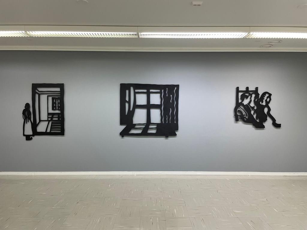 Tästä sarjasta on näyttelyssä yhdeksän teosta, jotka on valmistettu maalatusta vanerista.